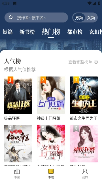 排行榜单:提供热门小说排行榜,帮助用户知晓当下最受大众喜爱的小说。