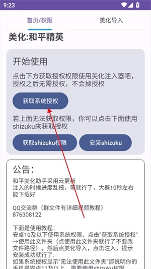 进入首页后,需先获取系统授权,可点击获取shizuku权限。
