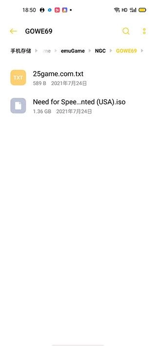 先确定好自己想玩的NGC游戏,接着打开手机文件夹去查找该游戏对应的镜像文件。