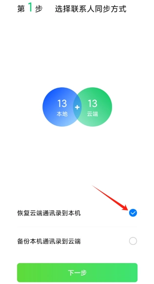 在同步设置里选择“从云端恢复通讯录到本机”,系统会自动把通讯录数据恢复到新手机上。