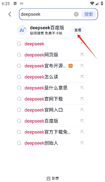 在接下来弹出的“deepseek百度版”右侧,点击“查看”按钮。