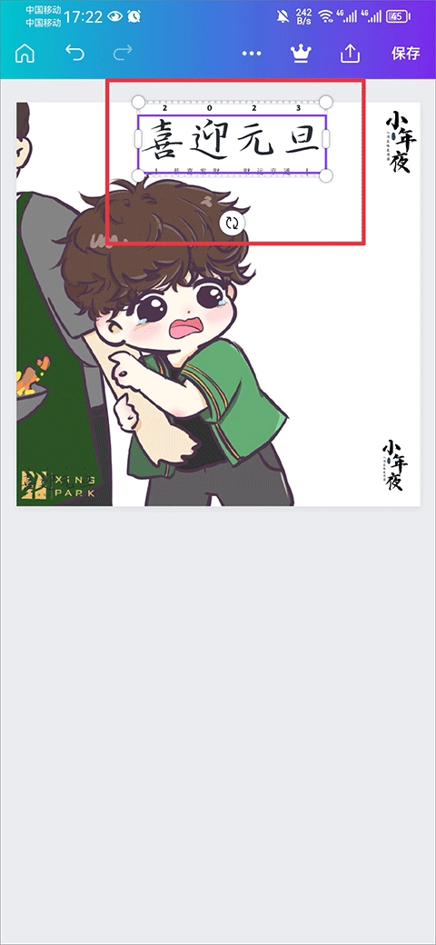 点击后,图片里就会显示出对应的文字,接着点击这些文字,还能对它们的大小和位置进行调整。
