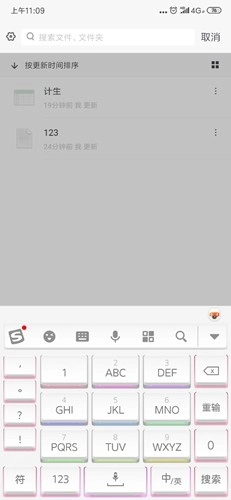 接下来我们点击扫一扫旁边的放大镜图标,这便是我们日常使用的搜索功能。虽然目前文件数量不多,这个功能暂时派不上太大用场,但一旦文档数量增多,它就会成为我们精准定位所需文档的关键工具。