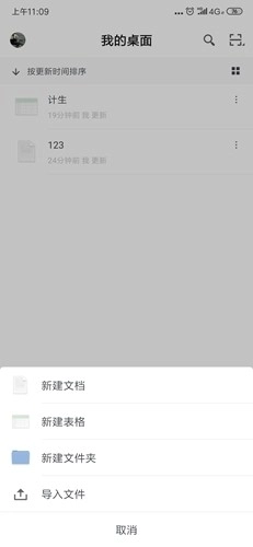 接下来要重点说说下方那个【+】号,点击它我们就能创建文档、表格和文件夹,也可以直接导入手机里的文件。
