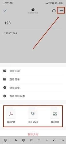 接着我们就进入了文档的详细页面,此时我们持续向下滑动页面,就能看到三个导出选项。要是文档的话,可以导出为PDF文件、WORD文档,或者直接导出成图片,操作起来还是挺便捷的。