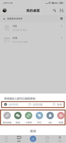 接着我们点击分享按钮,便进入了分享界面。在这个界面中,我们可以挑选合适的分享渠道,具体选择哪一个,取决于接收分享的人日常使用的软件类型,比如微信、钉钉、QQ或者微博等。选好对应的渠道后,就能直接完成分享操作了。