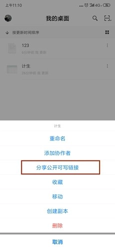 首先进入软件主界面,接下来我们选择一个文档开展操作。找到文档右侧的竖向三点图标并点击,接着向下滑动页面,便能看到分享链接选项;该链接支持权限设置,可防止无关人员随意访问文档。由于此处是演示场景,我直接选择了公开权限,不过大家实际使用时务必注意做好文档保密工作。