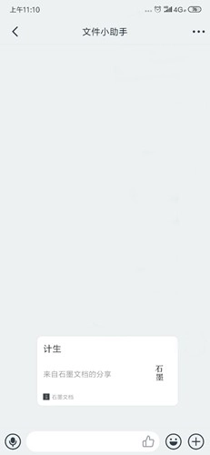 我这边把内容分享到了钉钉的文件小助手,之后打开钉钉,就能看到文件小助手里出现了一个石墨文档的链接。因为我分享的是公开链接,所以大家可以直接打开进行编辑。要是链接是私有的,那么点击链接的人就需要先登录石墨文档,而且得是被文档所有者设置为协作者的人,才能够打开文档。