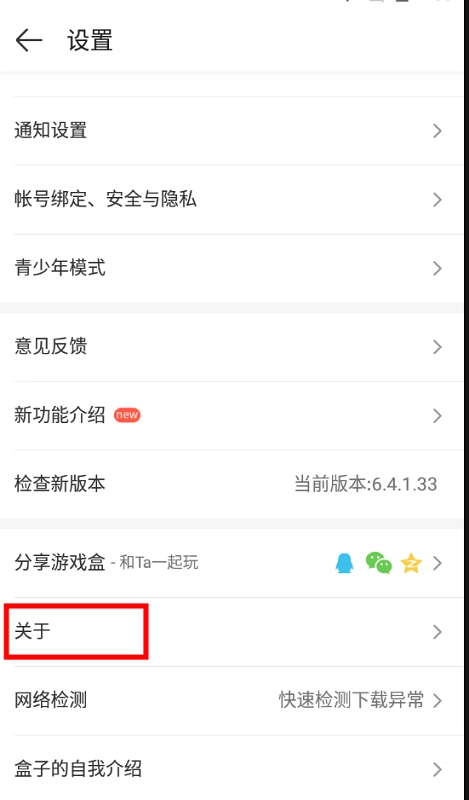 进入设置界面后,点击“关于”选项,就能查询到盒子客服的联系方式。