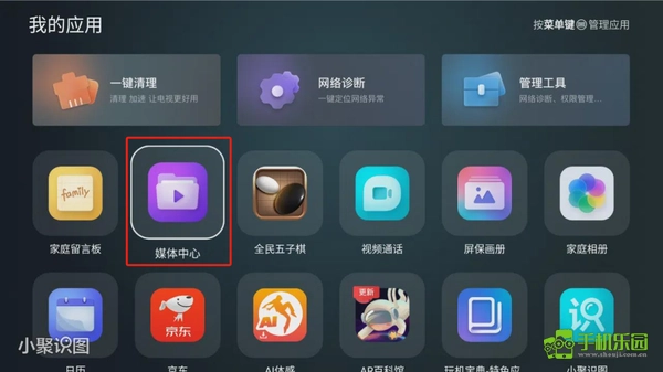 回到我的应用中,点击【媒体中心】。