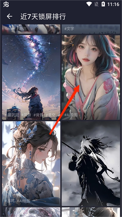 在“排行”页面中,能够查看“近7天壁纸排行”“近7天锁屏排行”以及“近7天收藏排行”,这些内容是很好的参考依据。