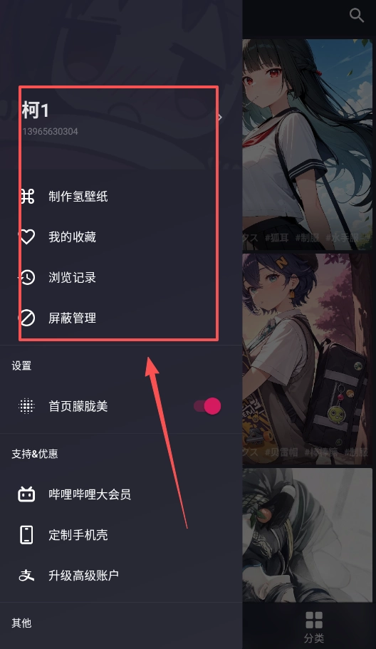 软件也提供“哔哩哔哩大会员”权益和“定制手机壳”之类的优惠,在“其他”选项里可以发掘更多功能,让壁纸使用体验变得更丰富多元哦。