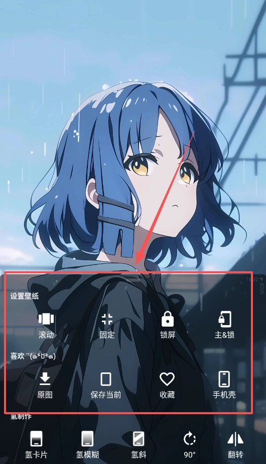 进入壁纸详情界面后,系统会弹出菜单,此时点击滚动键就行。