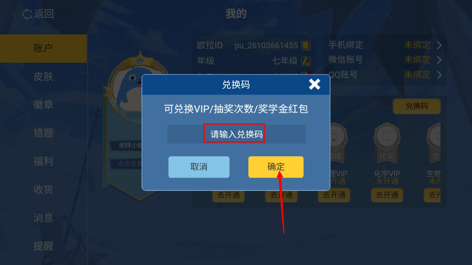 进入后输入输入兑换码,点击"确定"即可兑换。