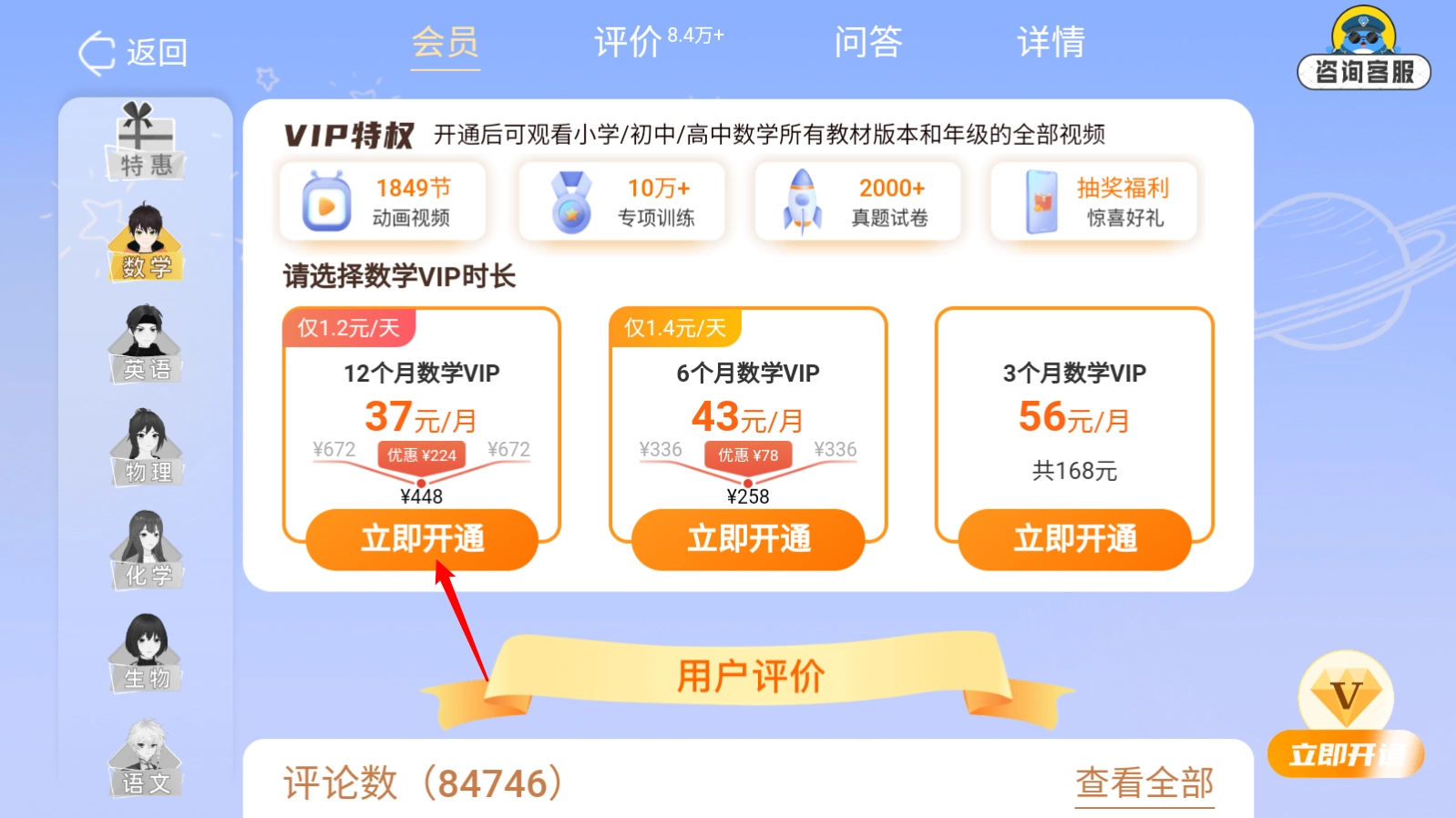 进入后选择一个月点击"立即开通"就可以了。
