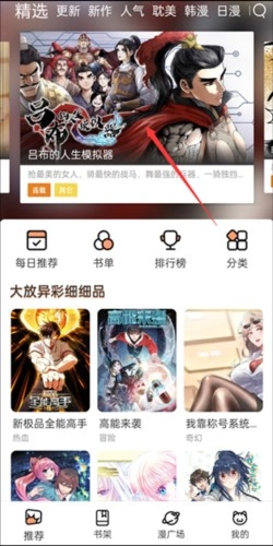 首先找到本页的这款软件,打开它,然后点击你想要阅读的漫画。