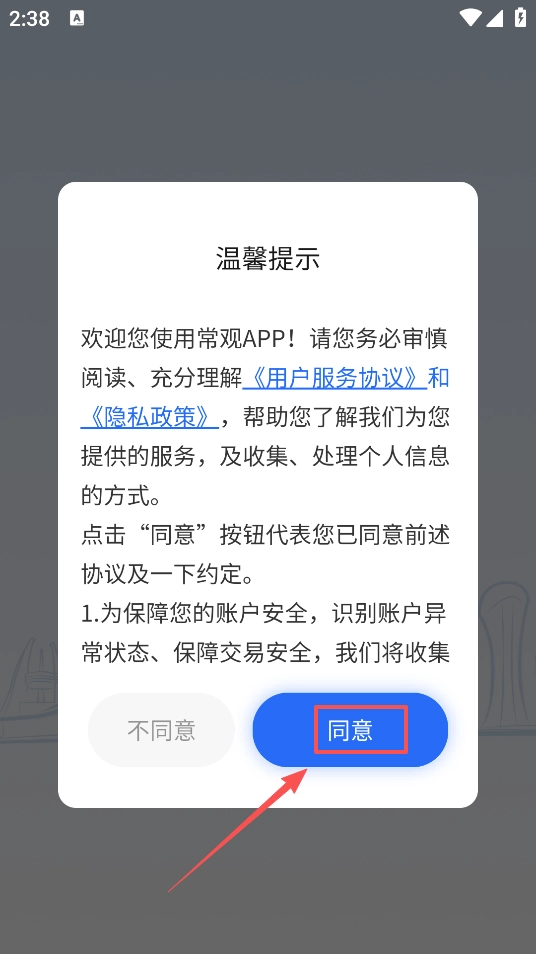 1、打开软件同意相关的协议规定