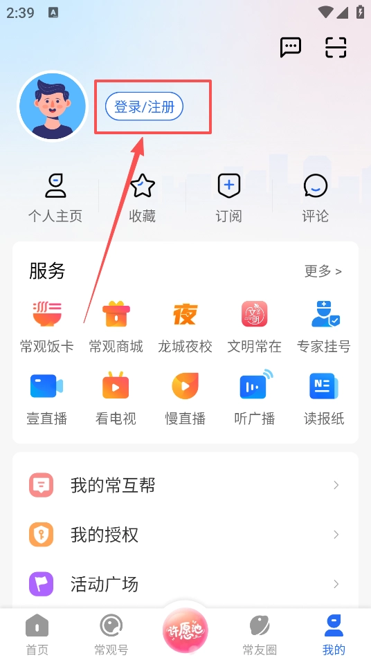 3、然后点击登录/注册