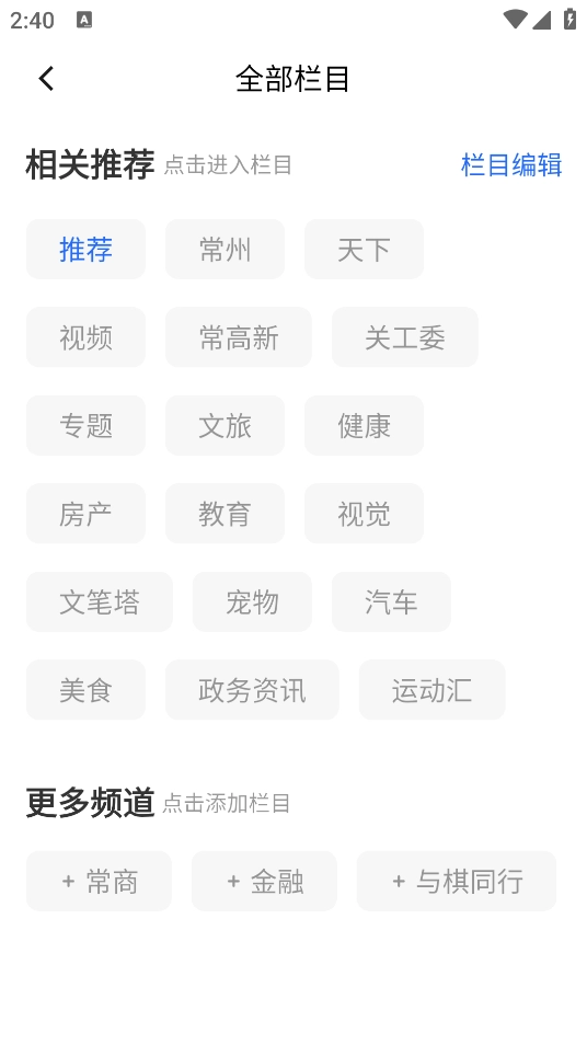 2. 点击右上角的三横图标,即可查看所有栏目。