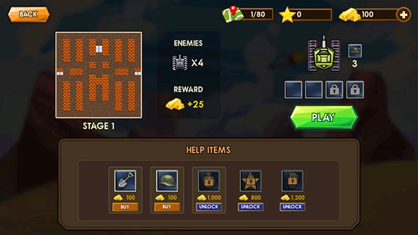 1、在本站安装坦克1990怀旧版后,打开进入,点击中心的“PLAY”开始游戏。