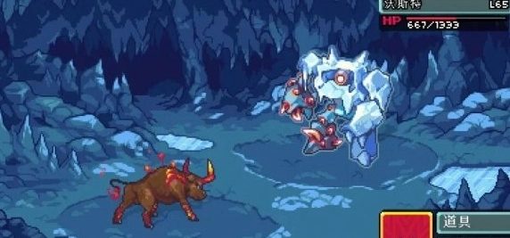 中途遇到冰系boss时,它在血量快要耗尽时会释放泰坦之力,让我方所有精灵都陷入冰冻状态(这招应该还能清除boss自身的异常状态)。不过它的攻击伤害不高,通关难度不大。