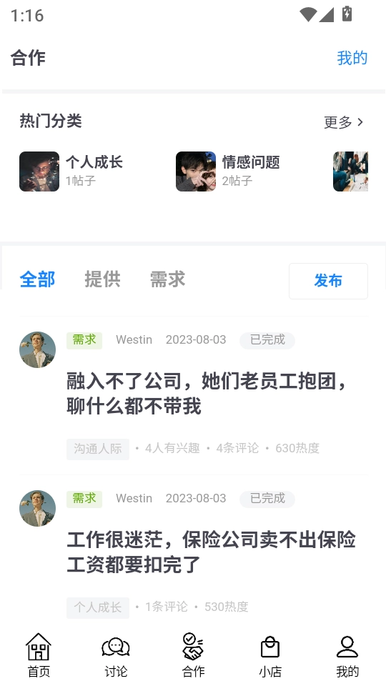 切换到合作板块,你可以在这里发布自己的需求,寻求其他用户帮忙解答问题,同时也能主动去解答别人提出的问题。