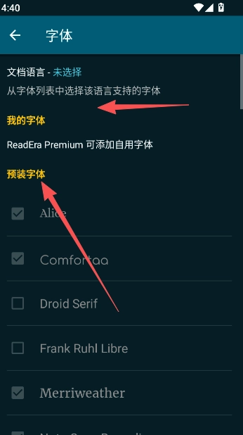 在此处完成字体修改操作,挑选契合你阅读偏好的其他字体进行添加导入,随后完成保存即可。