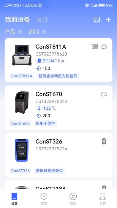 首次使用设备前,需通过“扫一扫”或“添加设备”功能将设备添加至企业。对于支持云服务的智能设备,可打开设备的“设置”-“云服务”,扫描设备界面显示的二维码完成添加;新款压力表背板贴有蓝牙连接码,扫描该码也能快速添加设备。点击“添加设备”后,系统会搜索附近所有蓝牙设备,用户可手动选择并完成添加;此外还支持按设备类型添加,欢迎体验。为保障添加安全,软件提供设备主动确认、输入验证码、输入设备密码等多种身份验证方式。设备默认添加到企业,用户也可指定添加至特定部门,同部门同事拥有设备访问权限,其他部门同事则无此权限。