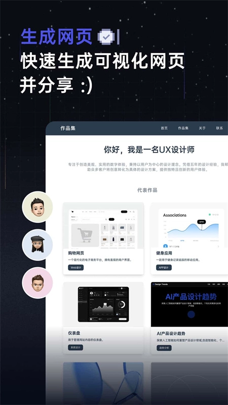 5- 网页一键分享生成:输入需求即可生成专属网页,添加所需元素后,点击一键分享即可完成操作。