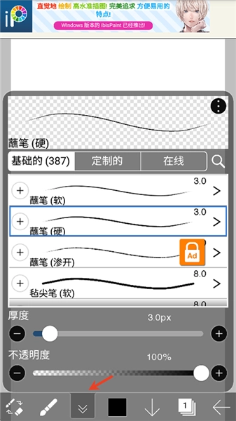 提供超过381种画笔类型(如铅笔、毛笔、水彩笔、空气刷等),支持自定义画笔参数(起始/结束厚度、不透明度、角度等),满足从细腻线条到粗犷笔触的多样化创作需求。