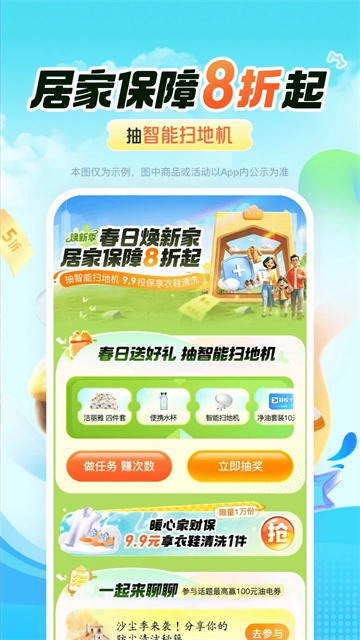 【乐活每一程】每日可抽9.9元空调清洗服务,每周一额外加抽5折优惠(涵盖生活缴费、家电任洗、衣鞋3件任洗),更有9.9元抢购生活缴费及居家生活礼包的福利活动。