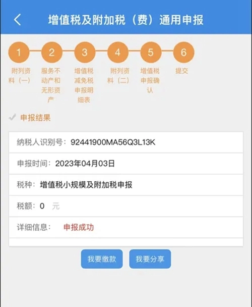 点击【提交】,申报成功