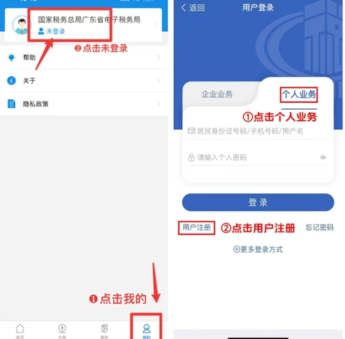 你可以按照以下步骤操作:首先进入广东税务局首页,找到并点击“我的”选项;接着在弹出的界面中点击“登录/注册”按钮;然后在“个人业务”板块下选择“新用户注册”,最后填写好所有相关信息即可。