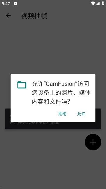 4:授予访问设备照片、媒体内容与文件的权限,以便选择需抽帧的视频。