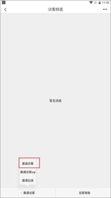 依旧是在【服务号】界面,找到并进入“访客频道”,该频道内设有“邀请访客”和“访客审批”两个功能选项,点击“邀请访客”即可。