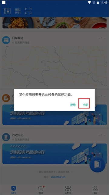 点击【服务号】右下方的门图标,即可进入设备绑定界面。