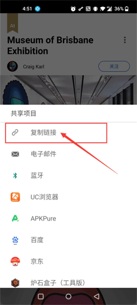 随即在出现的下拉项目中点击“复制链接”选项。