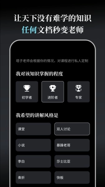 专属风格定制:用户能够依据个人偏好挑选讲解风格、音色与难度,无论是“严谨课堂”还是“暴躁老哥”,亦或是“阳光甜妹”与“智慧大爷”,甚至可以选择文坛巨匠来为自己讲解内容。