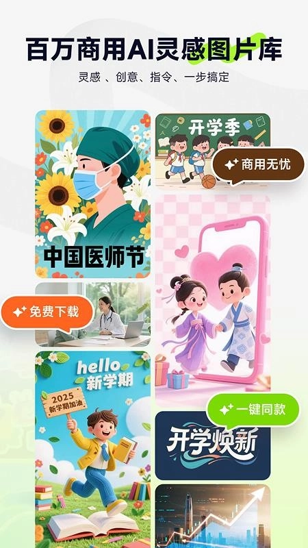 图星人不止能满足用户查找和使用模板的需求,还支持在应用内进行AI创作,让用户可以个性化定制所需的海报风格,满足个性化定制要求,享受贴心服务;作为一款简单易用的掌上创作软件,它是每个用户日常制作营销海报的必备之选,快来体验吧,创作更轻松!
