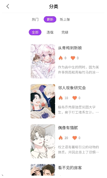 答:紫喵喵漫由作者在每周固定时间更新连载漫画,并且为读者提供免费阅读的服务。