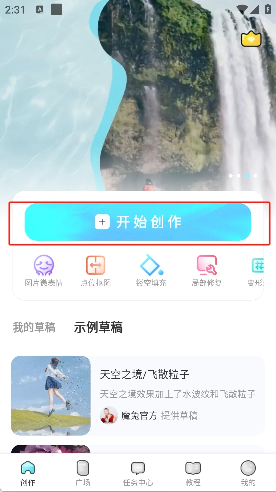 打开魔兔live2d后点击开始创作