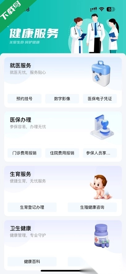(六)健康服务专区:围绕群众就医需求,提供预约挂号、电子医保等线上服务;力求为市民健康管理提供明确指引与便捷工具。