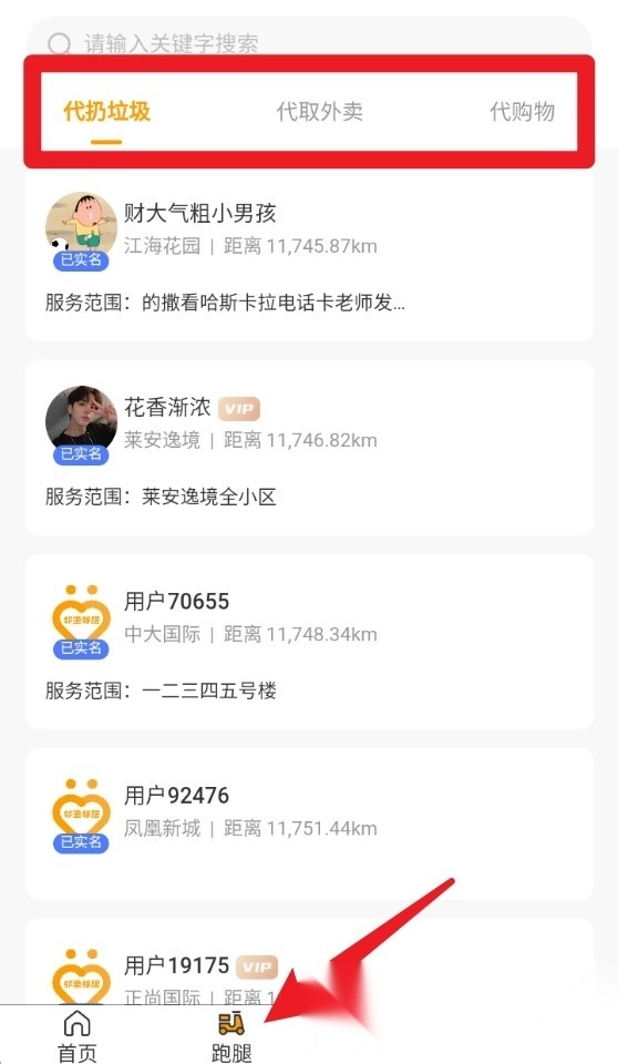 提供社区内的跑腿服务,涵盖代扔垃圾、代取外卖以及代购物等多种具体类型。