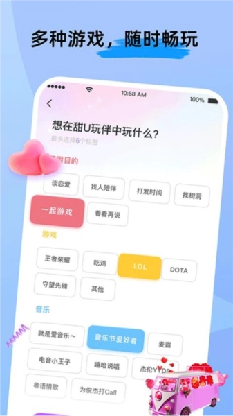 甜U玩伴,这款专门为游戏爱好者设计的社交利器,能让你轻松找到打字搭档。在这个平台里,你可以自在地和兴趣相投的朋友聊天、玩游戏,感受全新的互动快乐。摆脱孤单,让甜U玩伴做你最棒的陪伴,一起翻开线上社交的崭新一页。