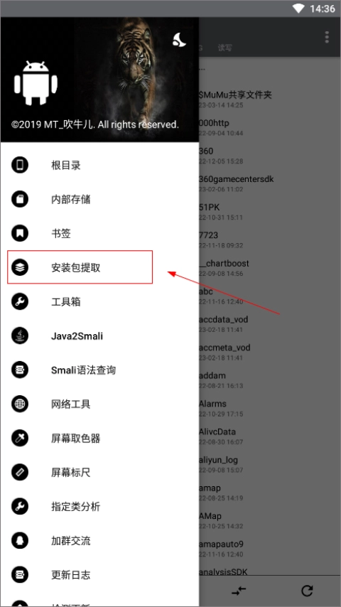 选择一个手机上要提取的应用或者游戏;