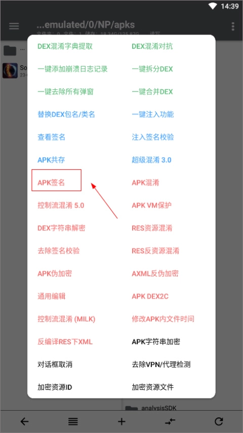 找到APK签名功能;