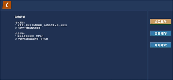 以科目二为例,在这个板块您能够练习曲线行驶、直角转弯、坡道起步等全部项目,还可以根据自身的薄弱环节来针对性地进行练习。