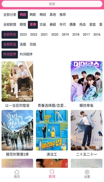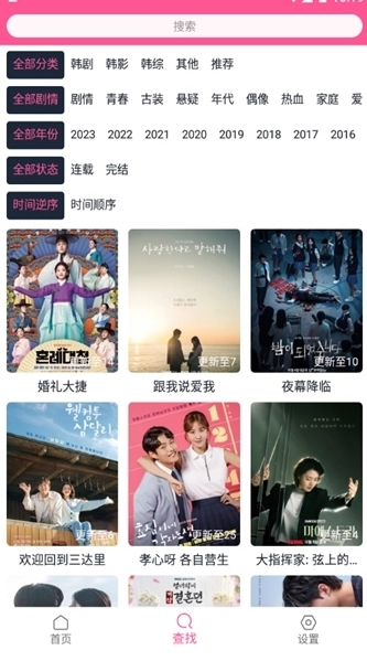 直接进入查找板块,这里已经对韩剧做了分类,我们只需挑选自己喜爱的分类标签就行。