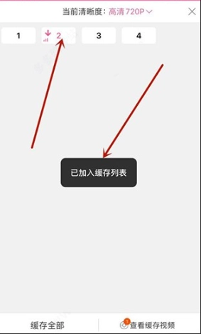 选择想要的剧集,点击即可将剧集加入缓存列表中