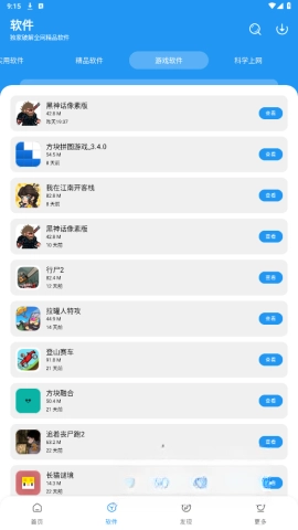比如,挑选【游戏】类别,这里会展示许多你或许在普通手机应用商店里找不到的游戏安装包。在这个游戏列表里,找到你想要体验的游戏,点击进入【详情页面】来了解更多内容;